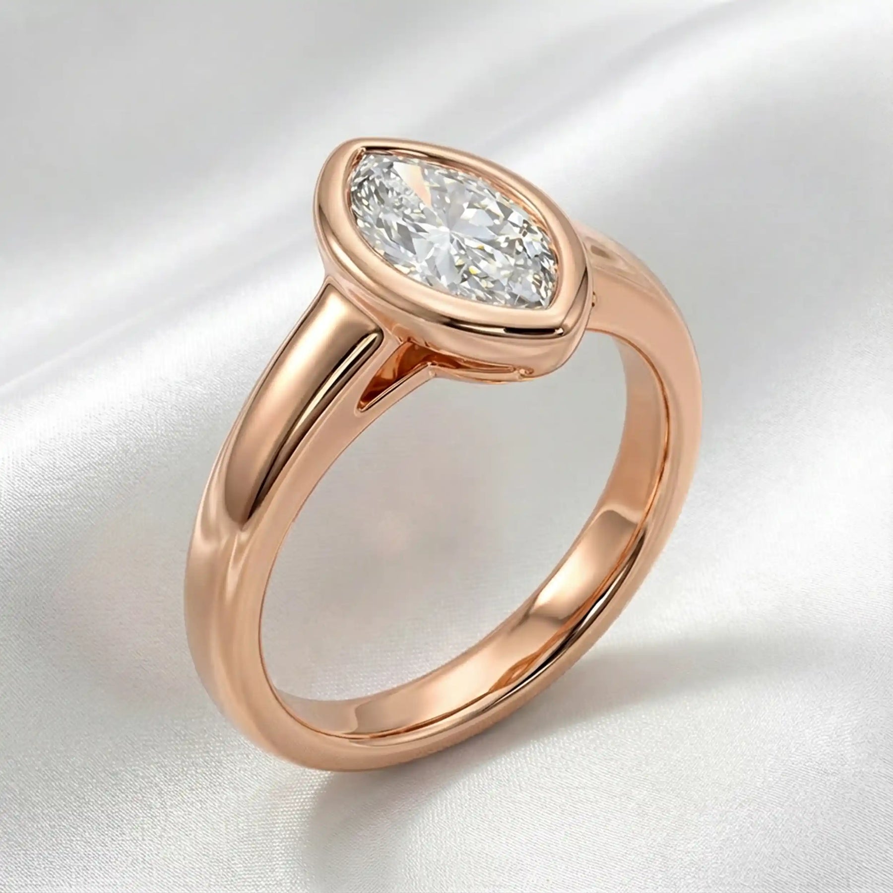 A symbol of commitment and individuality, this marquise lab-grown diamond bezel engagement ring blends contemporary design with enduring romance.
