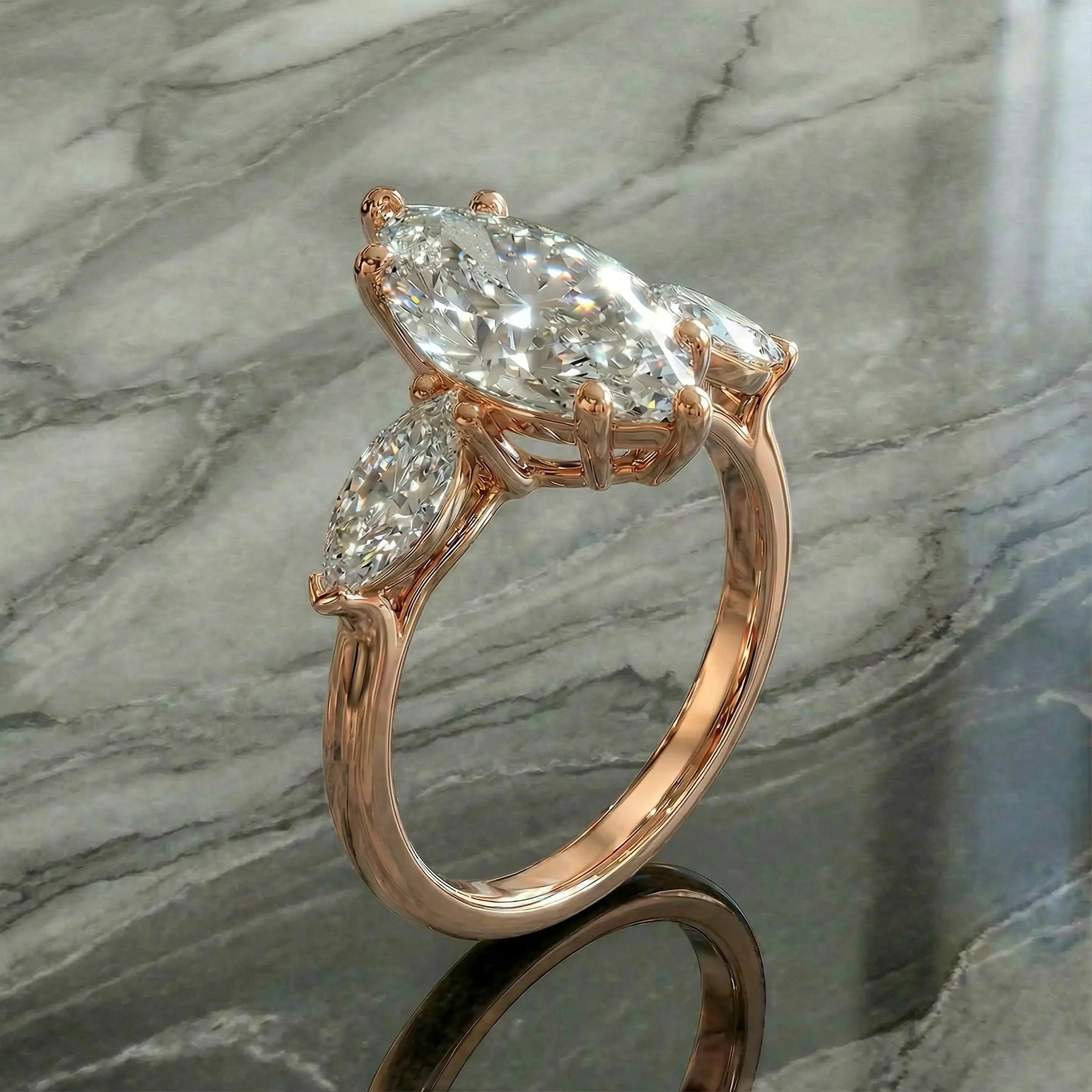 Flanked by matching marquise lab-grown diamonds, this design represents your past, present, and future—elegantly balanced and endlessly radiant. Crafted for lasting comfort and everyday wear, the setting allows each stone to shine while maintaining a graceful, modern profile.