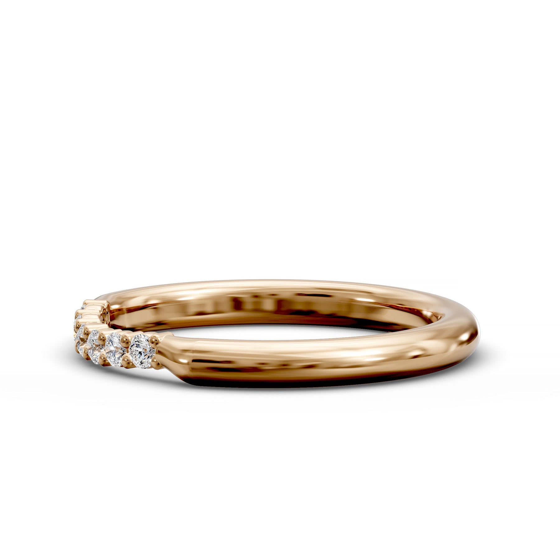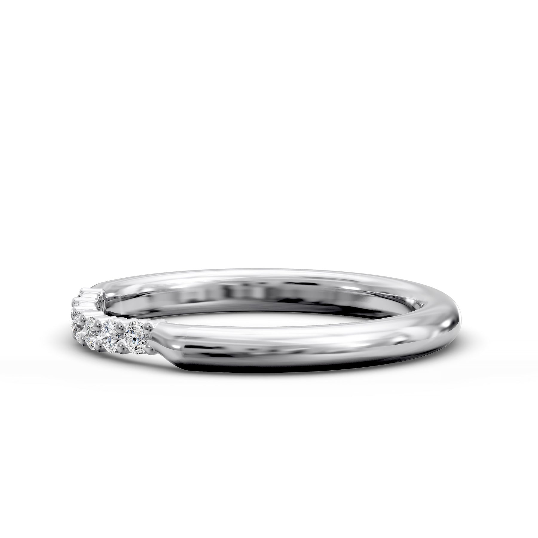 Elegant and timeless, this curved diamond wedding band features a graceful top cluster of round brilliant diamonds that shimmer beautifully across the arc of the ring. Designed with a gentle curve to complement engagement rings, it fits seamlessly against solitaires, halos, and vintage styles alike.