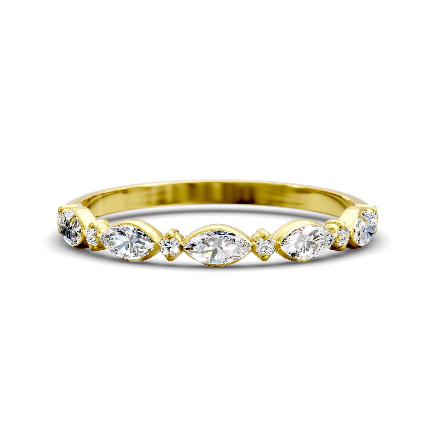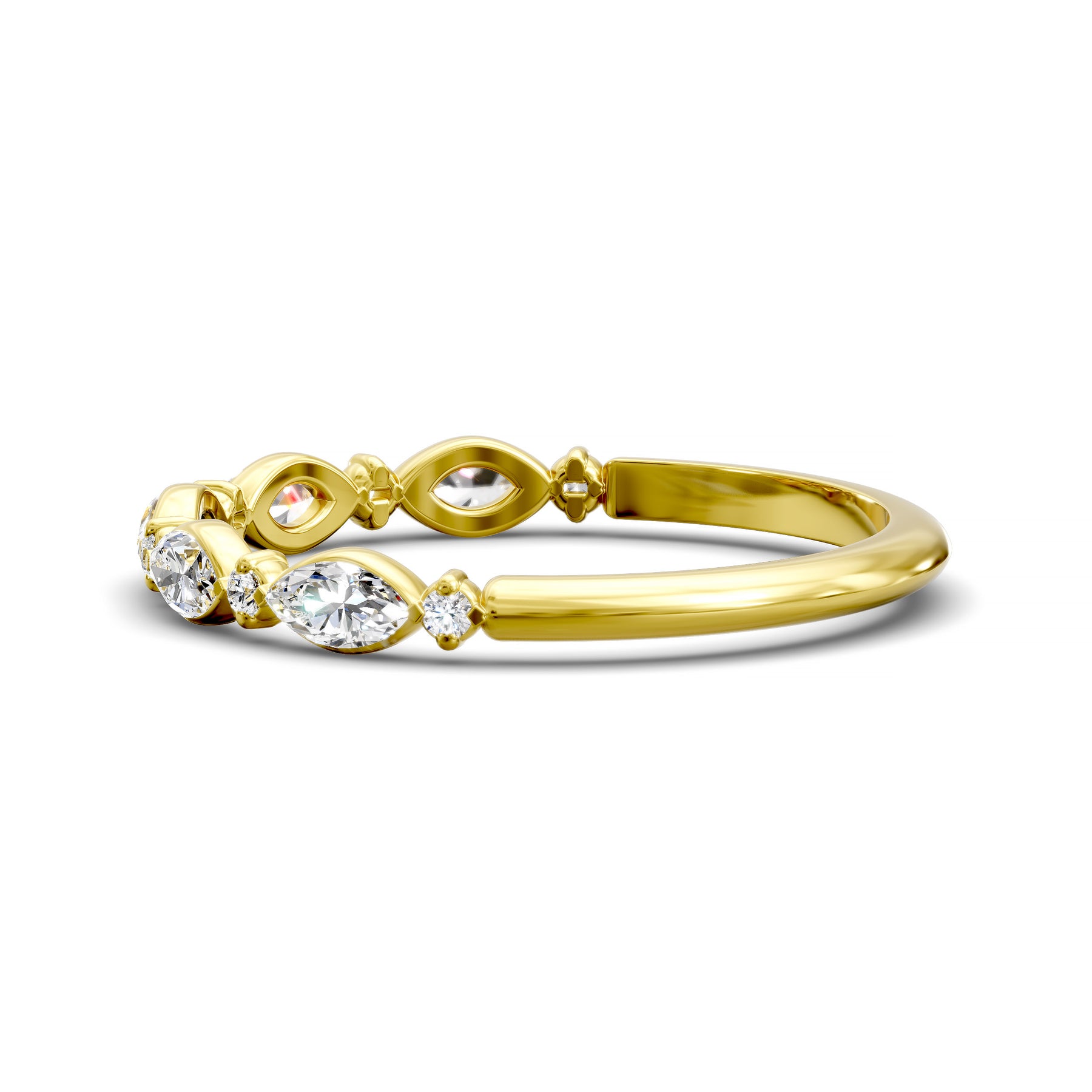 Introducing the Marquise & Round Half-Eternity Wedding Band – Elegant Bridal Ring, a beautifully crafted design in which marquise-cut stones alternate with round-cut stones across half the band for a harmonious and refined sparkle. This elegant silhouette delivers continuous brilliance and sophisticated style.