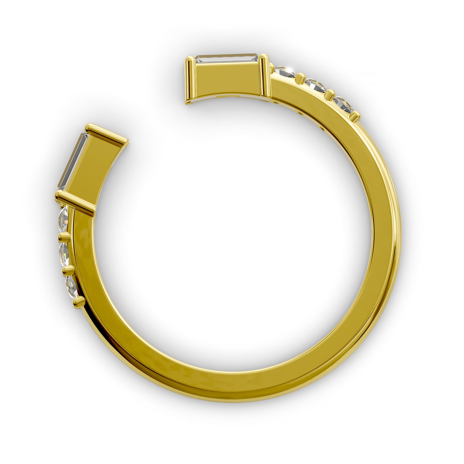 A modern open cuff wedding band featuring baguette and round diamonds in a refined split-ring design—minimalist, elegant and made for everyday comfort.