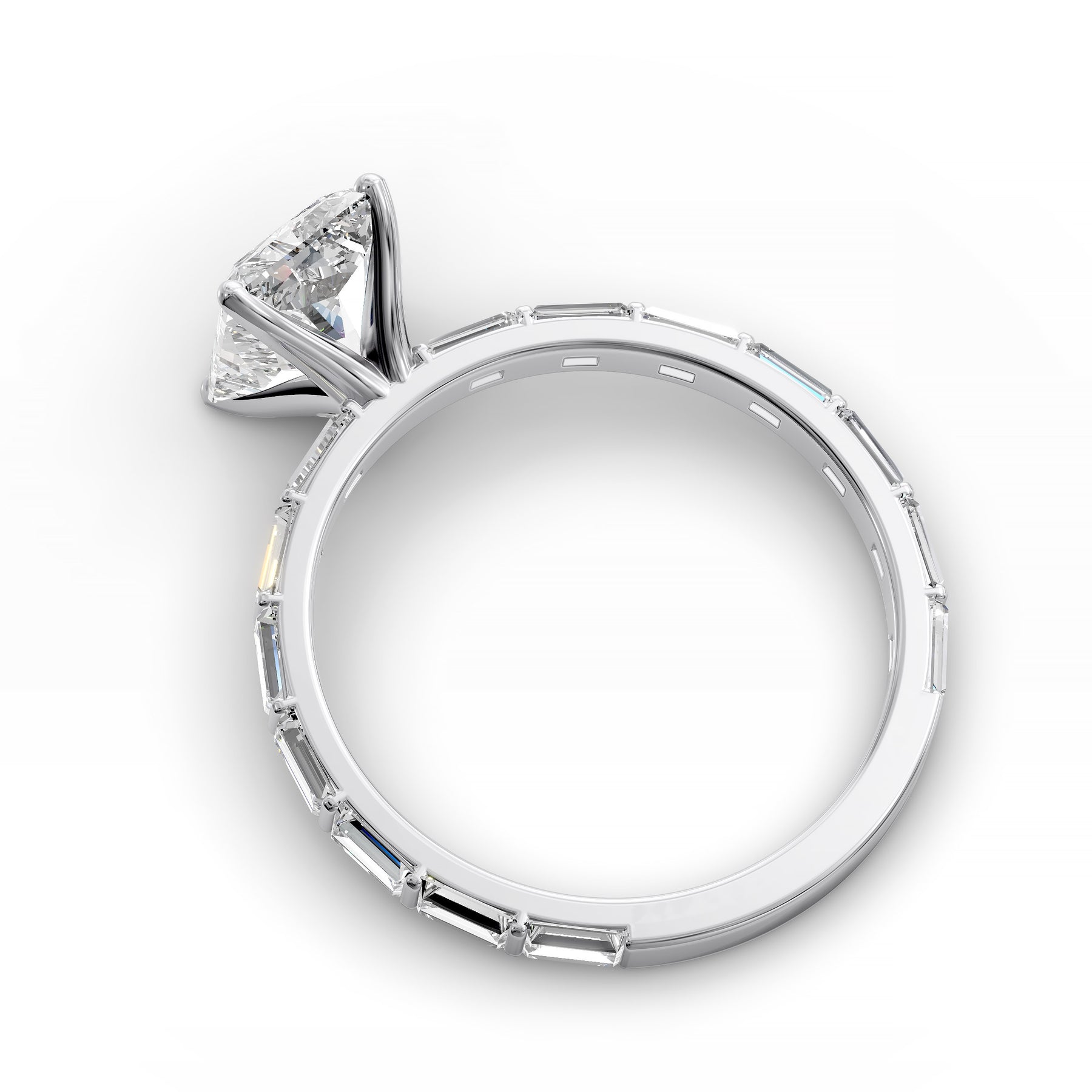 This radiant-cut engagement ring is designed to captivate with its clean lines and intense sparkle. The 2ct center diamond features a striking faceted pattern that reflects light beautifully, while the baguette diamond band creates a luxurious, modern silhouette with uninterrupted brilliance.