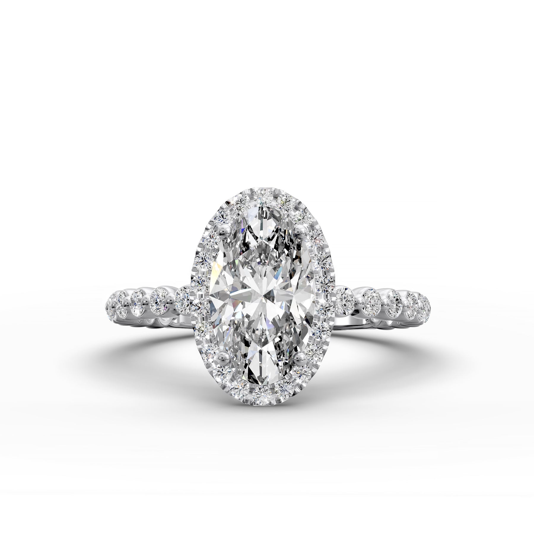 2 Carat Lab-Grown Oval Diamond Halo Ring with Floating Shared-Prong Band