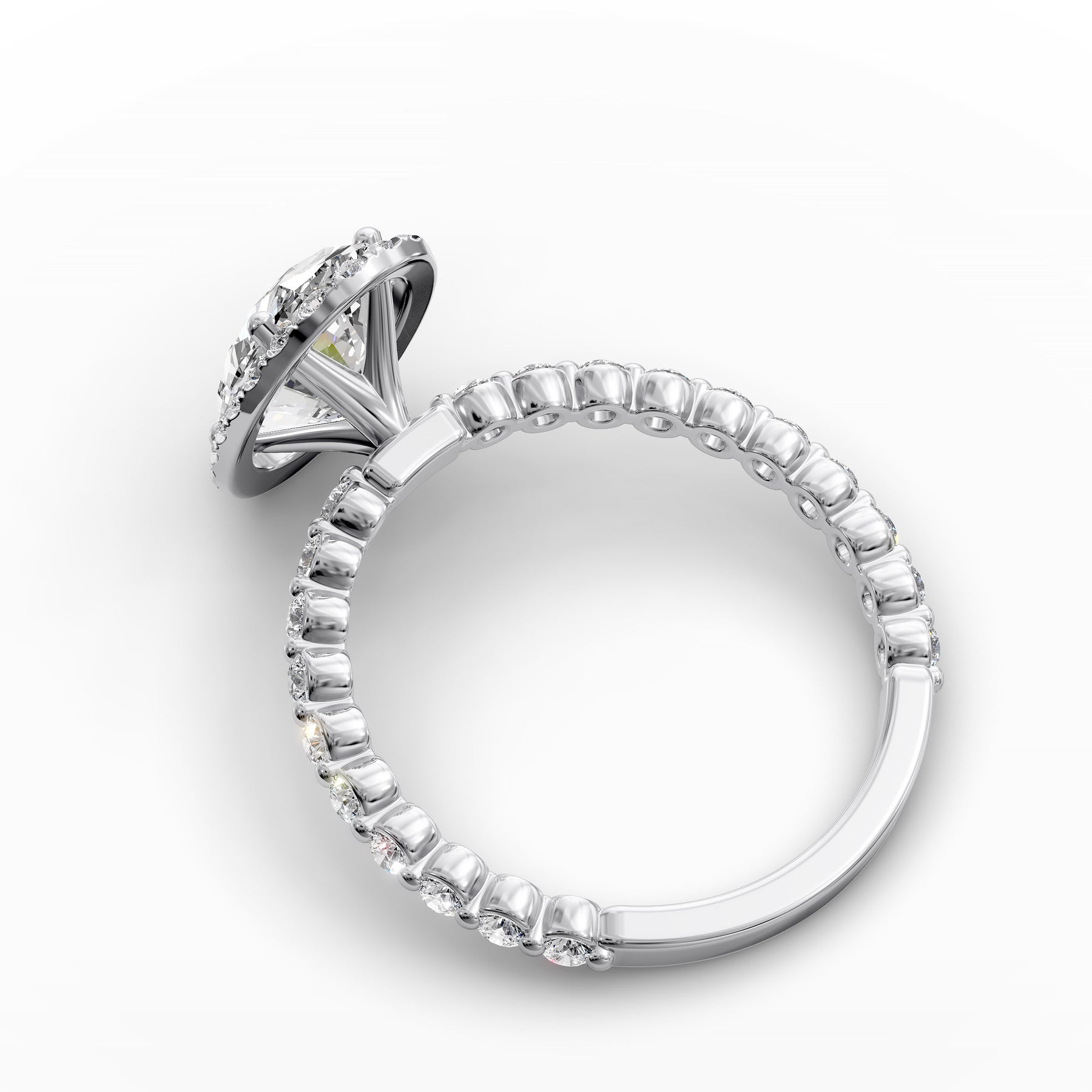This 2 carat lab-grown oval diamond halo ring radiates brilliance with its floating shared-prong band that sparkles from every angle. The halo enhances the diamond’s elongated fire, creating a luminous and elegant silhouette. A luxurious symbol of love designed for comfort and timeless beauty.