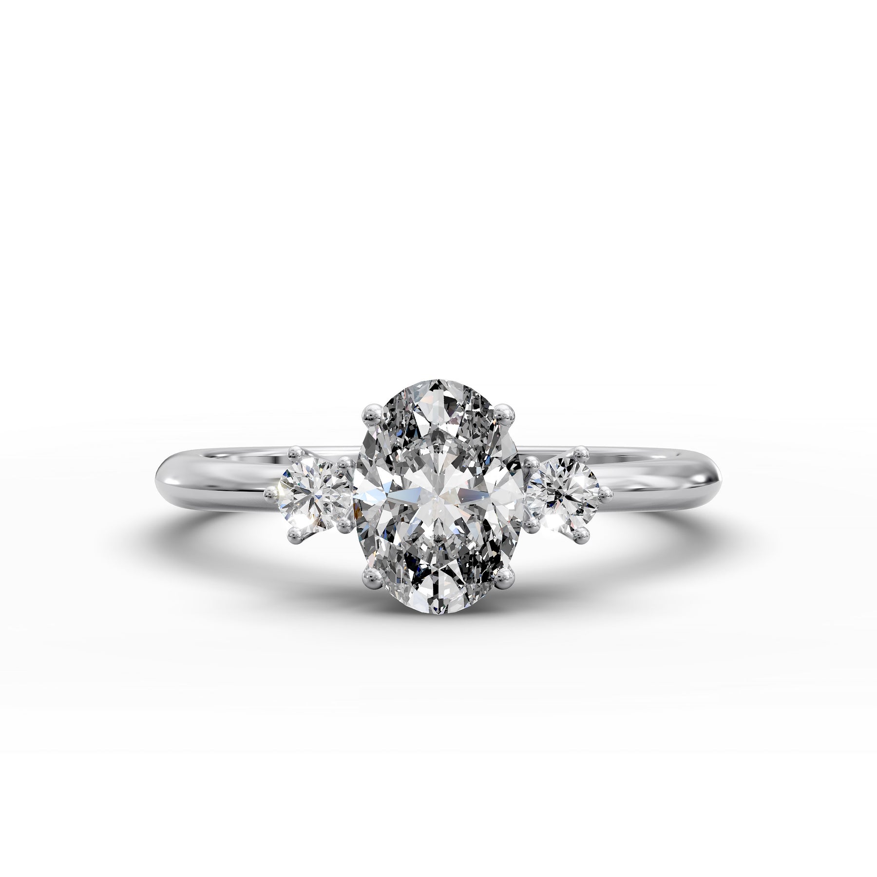This 1 carat lab-grown oval diamond three-stone engagement ring symbolizes past, present, and future with brilliant harmony. The side stones enhance the center’s sparkle, creating an elegant and meaningful design. A timeless ring crafted for everyday comfort and lasting beauty.