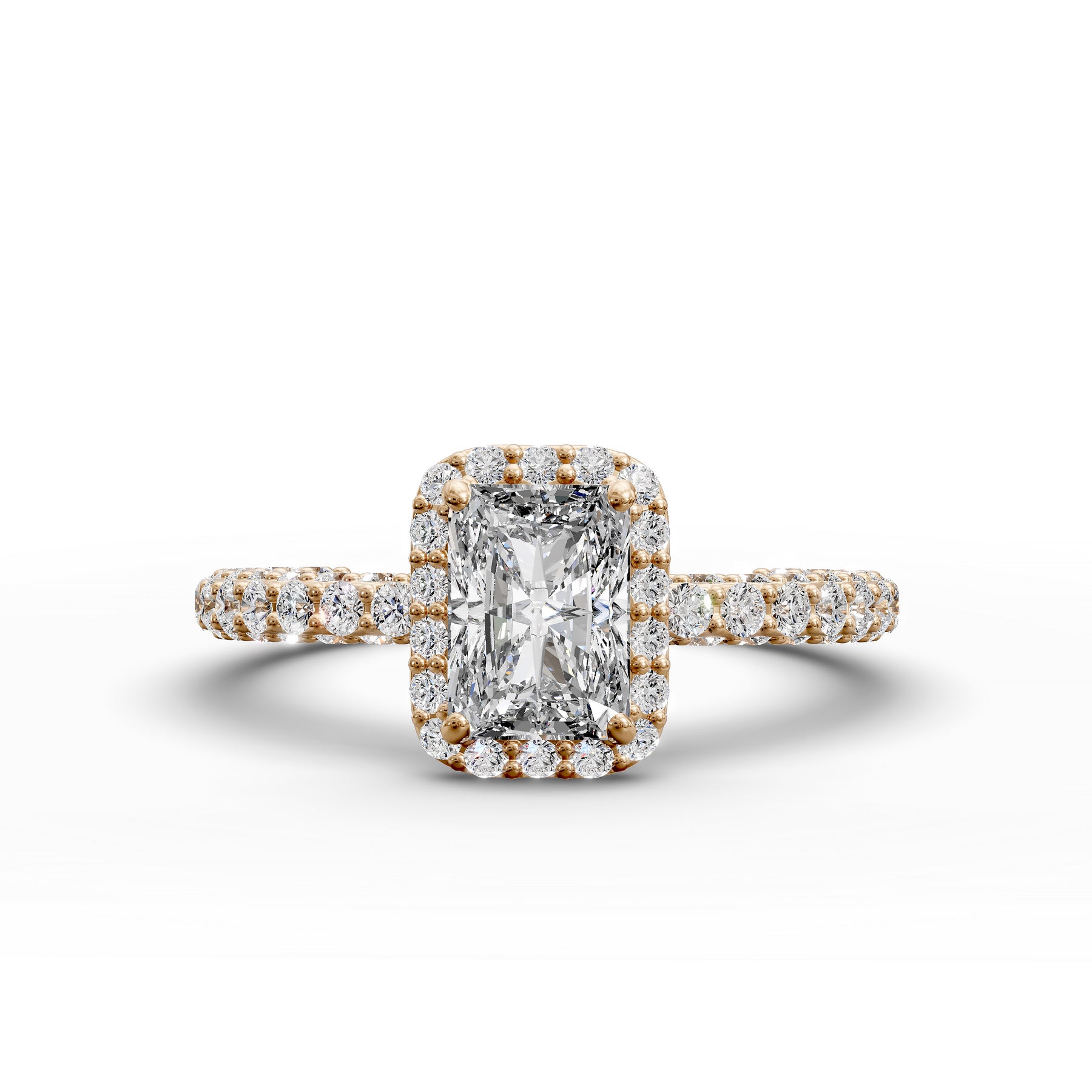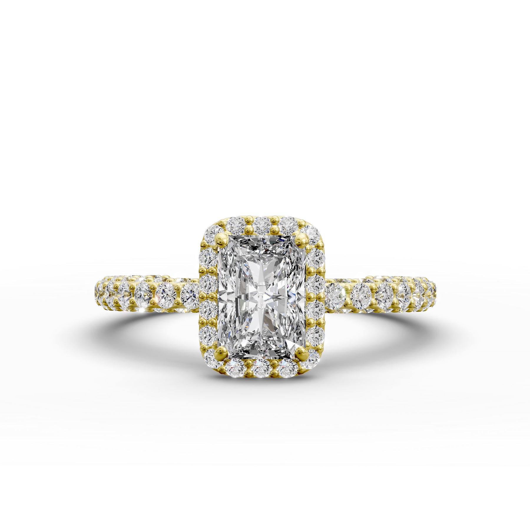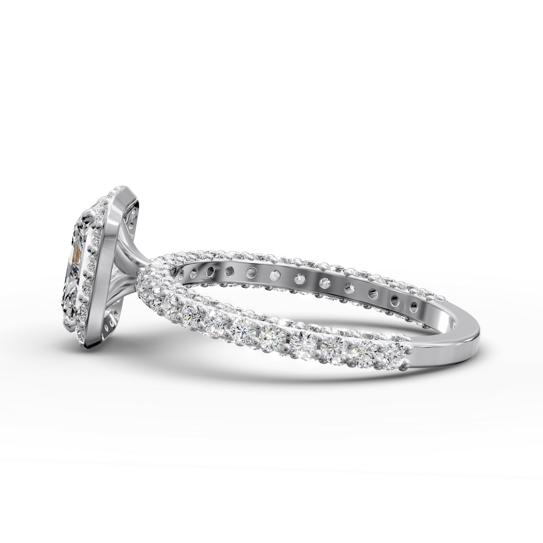 Celebrate your love with a beautifully crafted 1.2 carat Emerald diamond halo engagement ring that delivers remarkable sparkle from every angle. The Emerald-cut center stone is surrounded by a shimmering halo, enhancing its fire and presence. A triple prong-set diamond band wraps the finger in continuous brilliance, offering an elevated and luxurious look.