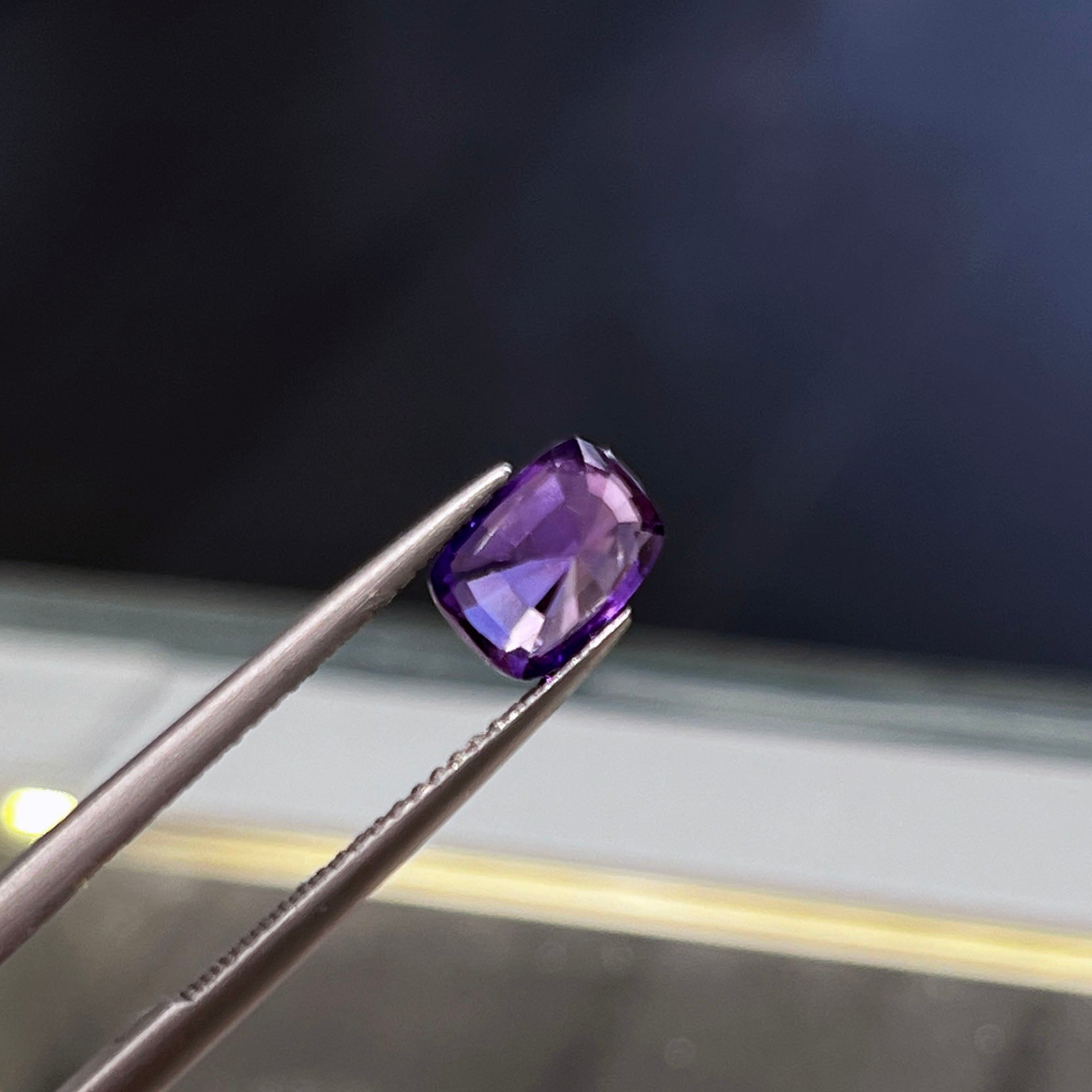 This luxurious 2.11ct deep purple sapphire features a refined, elongated cushion cut that enhances its rich, regal hue. With dimensions of 8.04 x 5.82 x 4.46 mm, the gem has a substantial presence and exceptional depth, making it a standout centerpiece for custom high-end jewelry. Its intense purple color is both bold and elegant, ideal for collectors or those designing one-of-a-kind rings, pendants, or statement pieces. A rare combination of size, cut, and saturation, this sapphire offers timeless beauty and remarkable versatility.