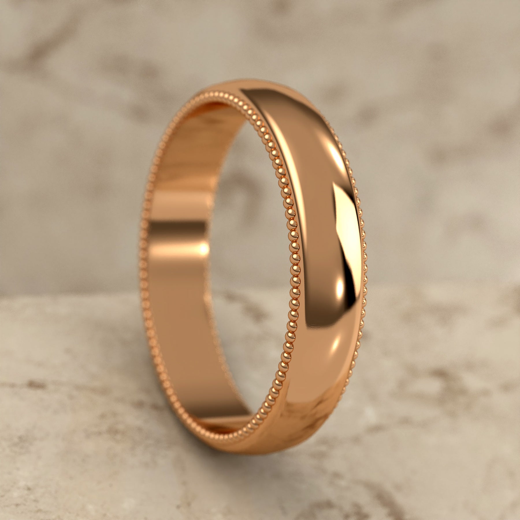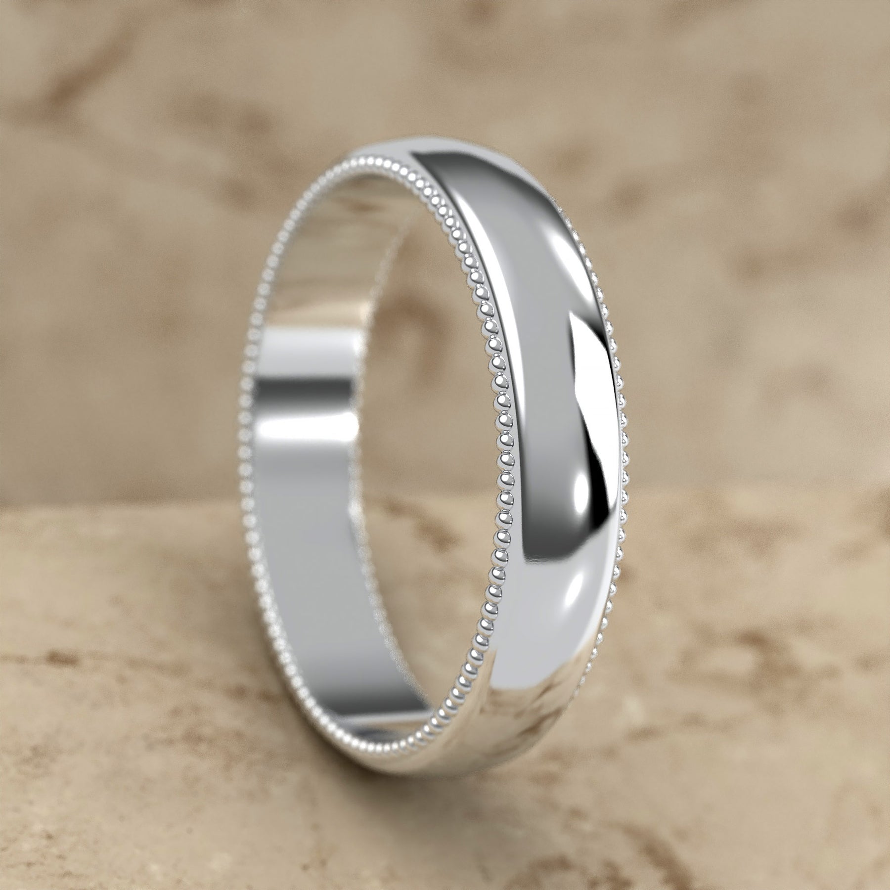 high-polish domed wedding band with fine milgrain borders
