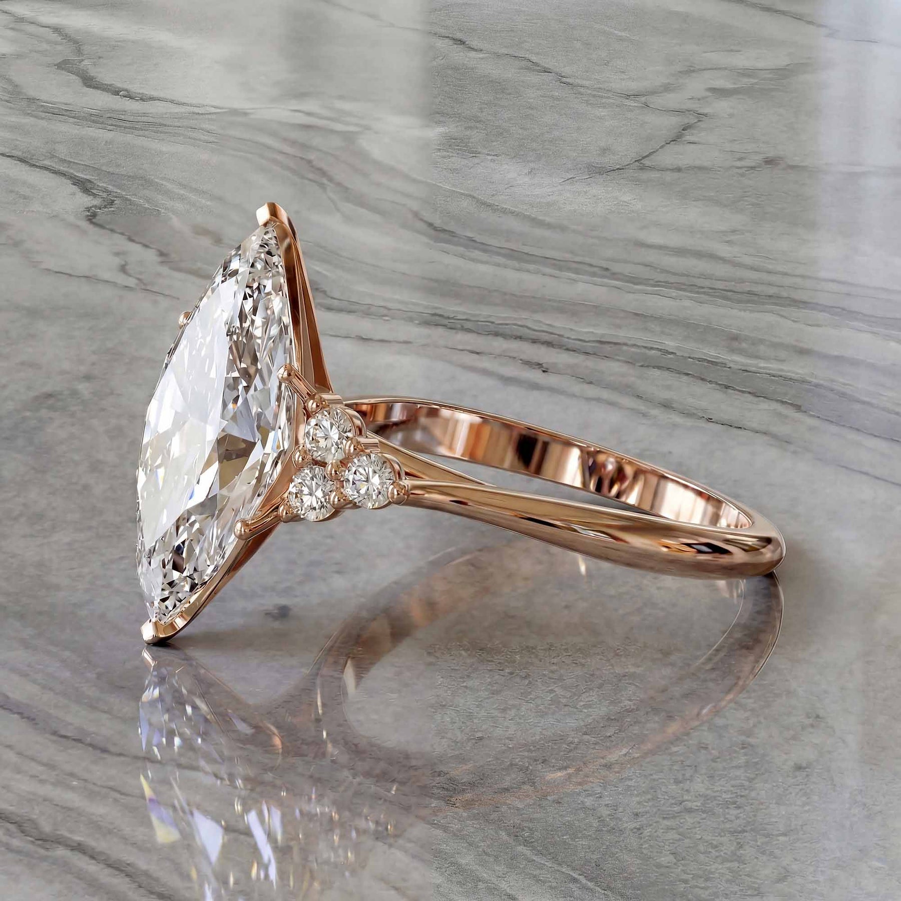 A bold statement of brilliance and artistry. Featuring a 4 carat lab-grown marquise diamond with clustered side diamonds, this engagement ring delivers dramatic sparkle, elegant depth, and unforgettable presence.