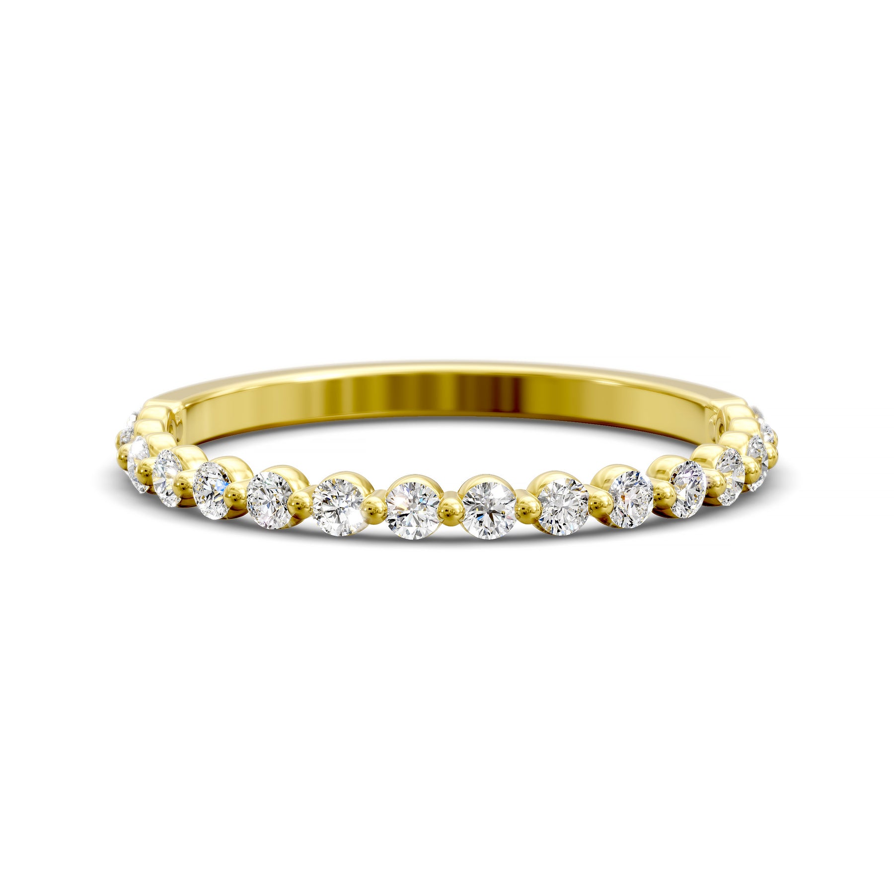 Introducing the Floating Diamond Shared-Prong Wedding Band – a sleek, modern design where each diamond appears to float seamlessly along the band. The shared-prong setting enhances brilliance from every angle while creating a refined, airy silhouette.