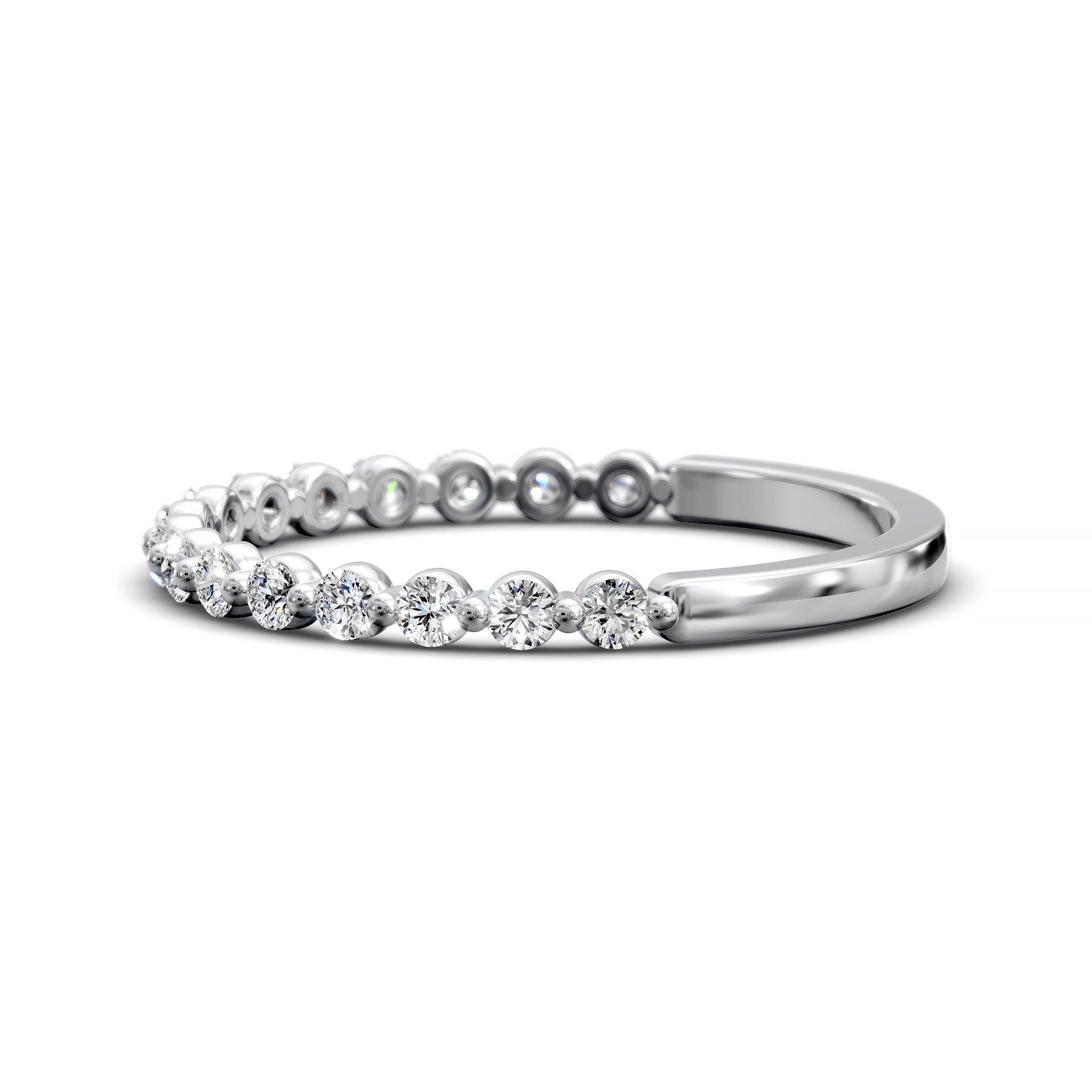 This “floating diamond shared-prong wedding band” naturally incorporates the main keyword, supporting search visibility while highlighting expert craftsmanship and contemporary design.