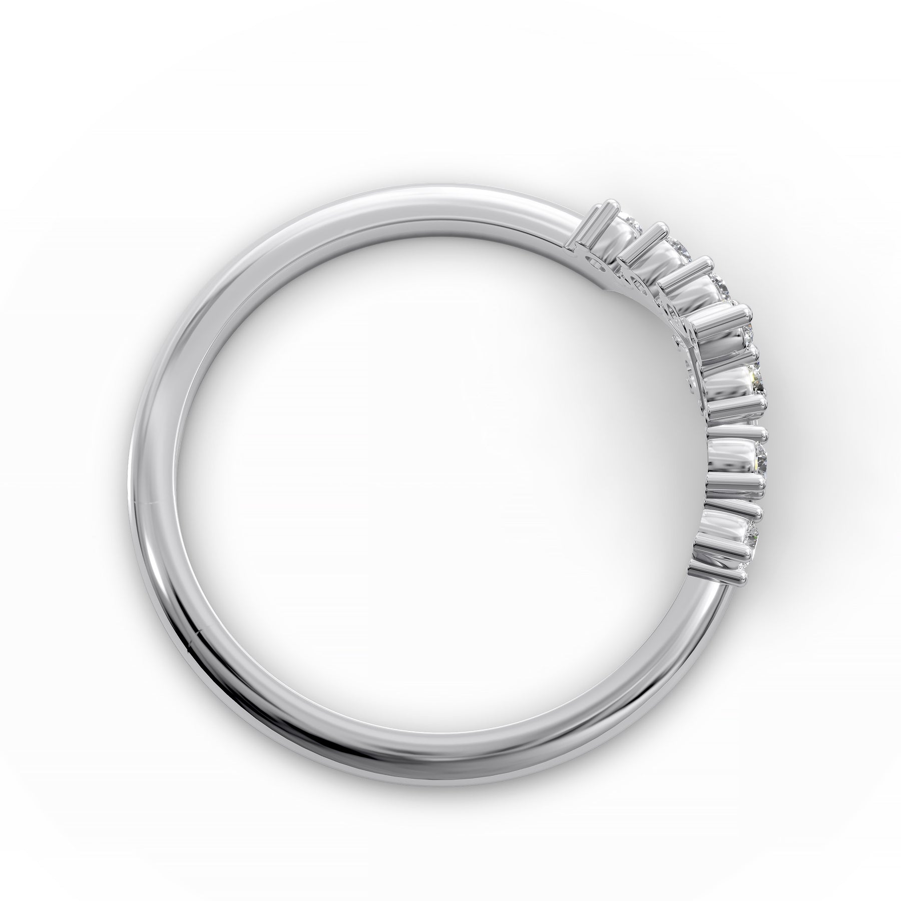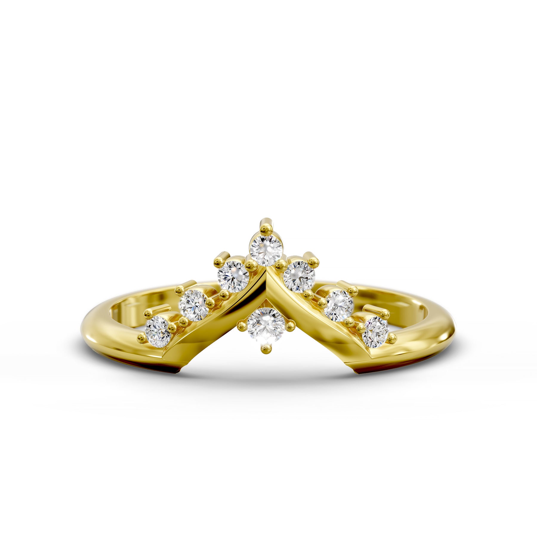 A graceful V-shaped wishbone wedding band designed to contour beautifully with your engagement ring while offering modern elegance and effortless everyday comfort.