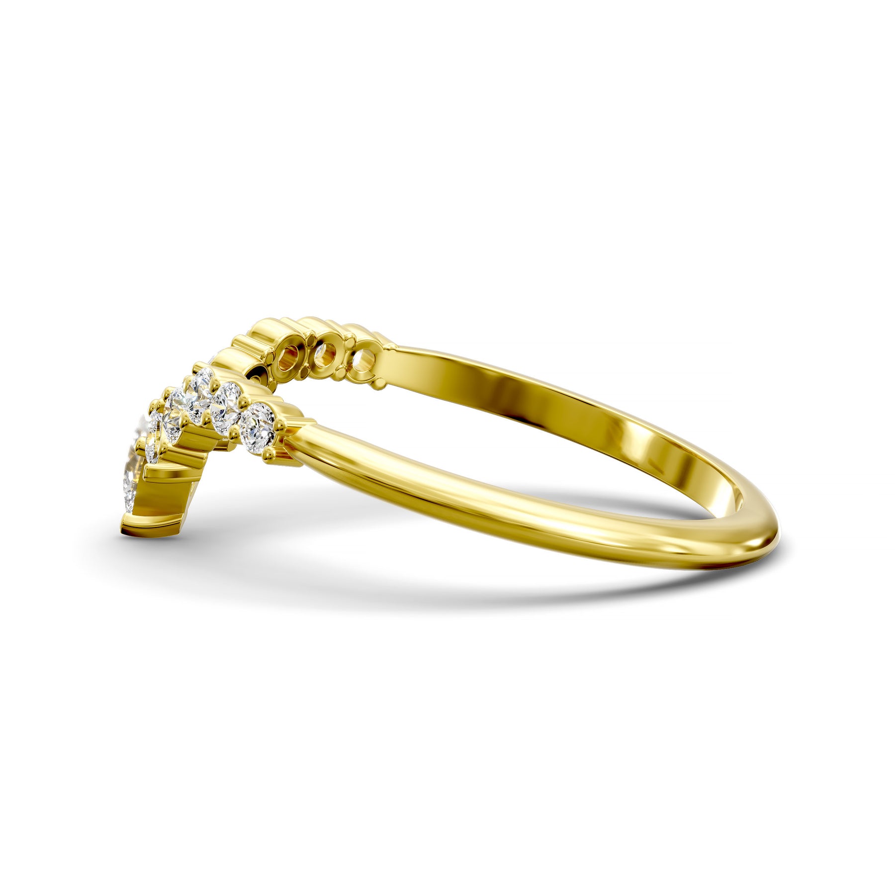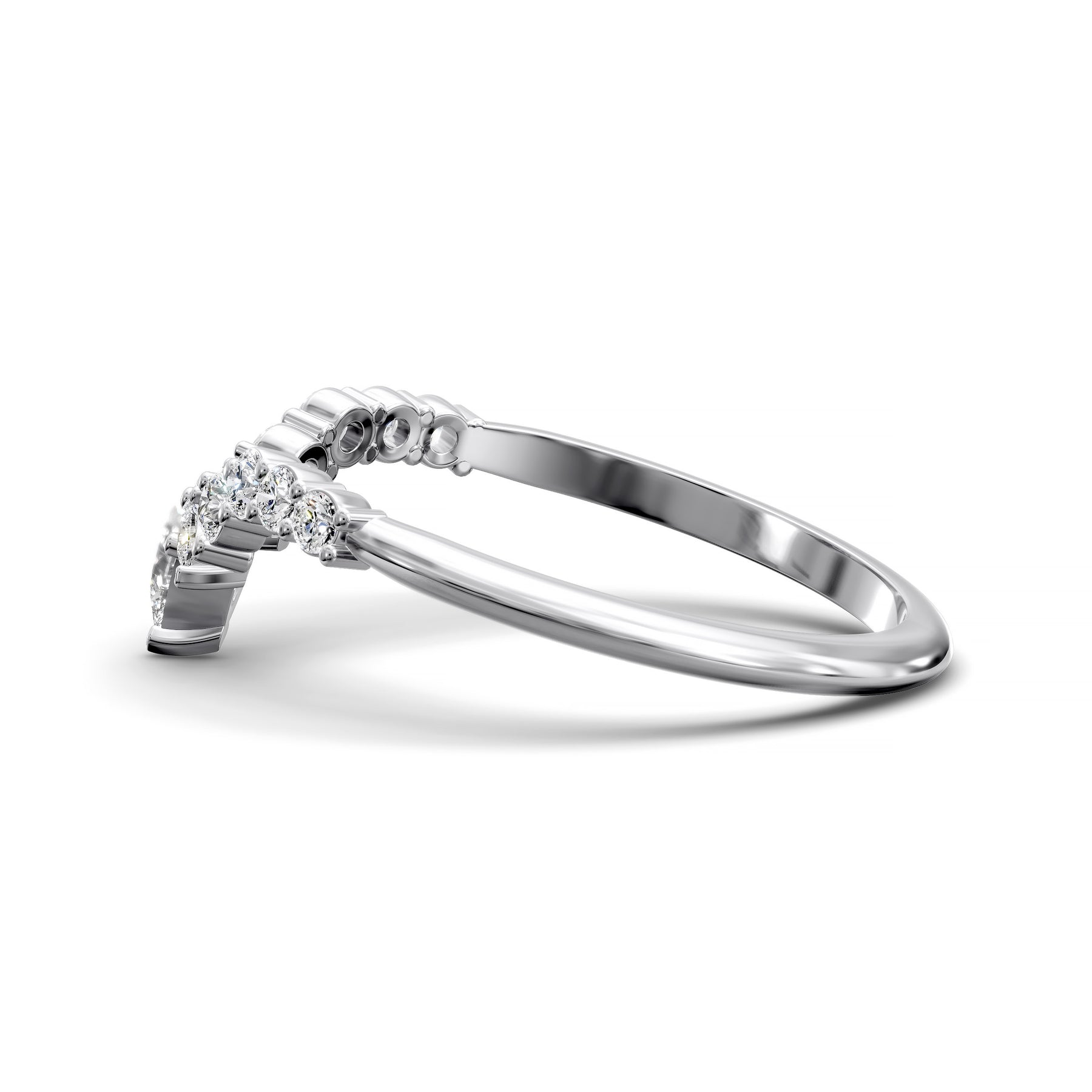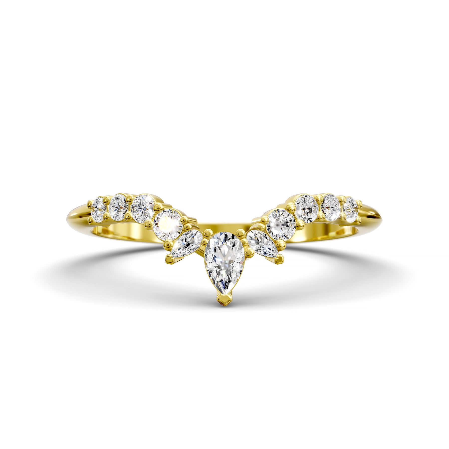 Elevate your bridal stack with this elegant V-shaped wedding band, designed to add a graceful curve to your finger. At its center lies a dazzling pear-shaped stone, flanked by perfectly matched round stones that taper along the band for a seamless, flowing look. The delicate wishbone silhouette not only complements engagement rings beautifully but also makes a stunning standalone piece.