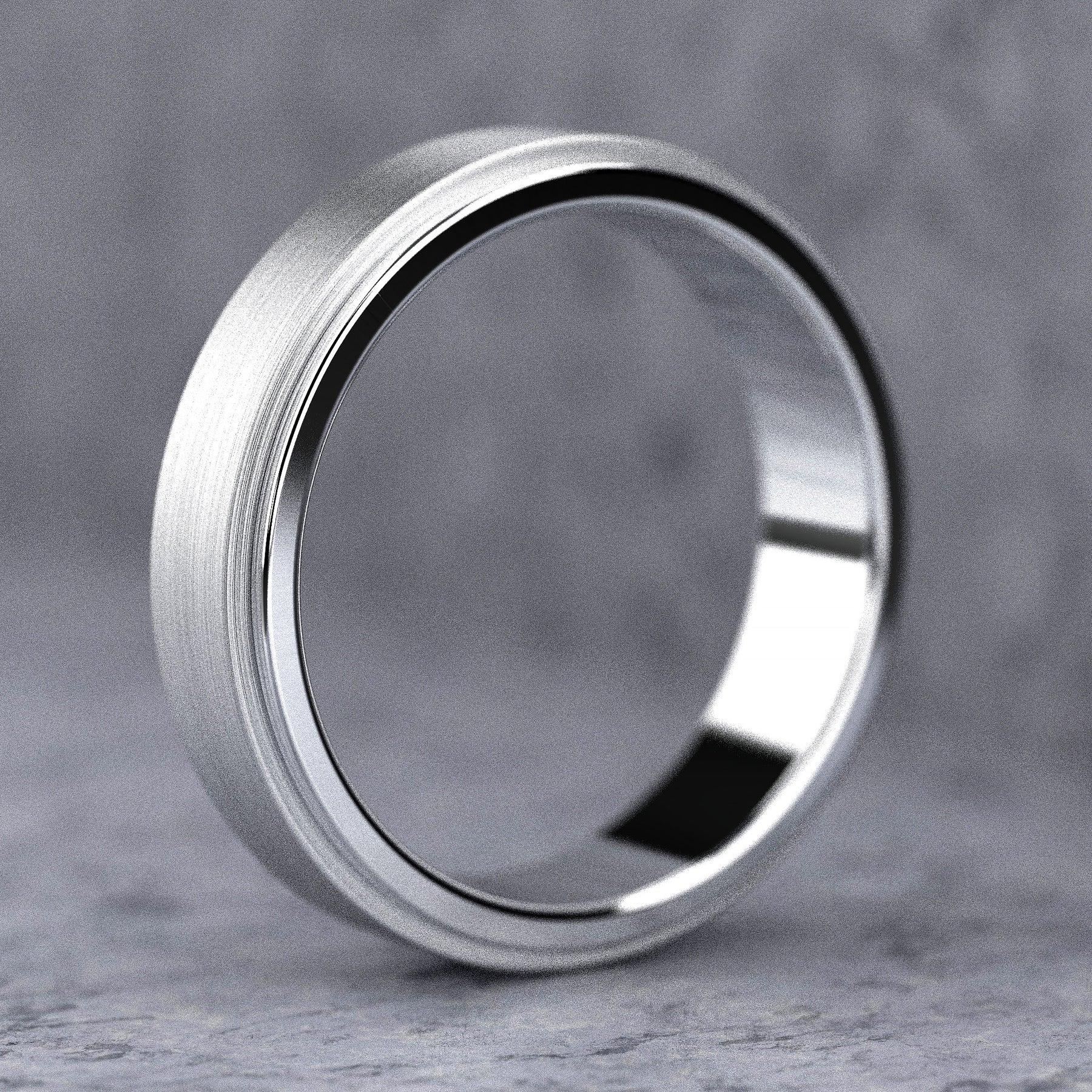 This men’s wedding band showcases a clean brushed center that delivers a refined, contemporary texture. The polished step edges frame the design with a sleek, reflective finish, giving the ring a bold contrast that enhances its sophistication.