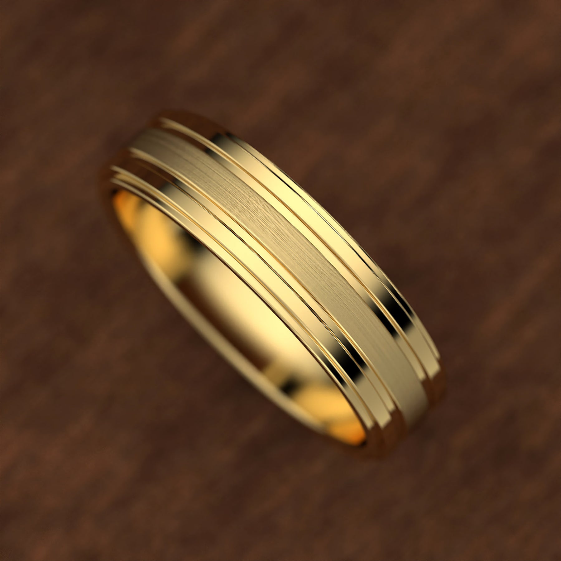 Ice-Cut Textured Men’s Band with Polished Dual Groove Accents