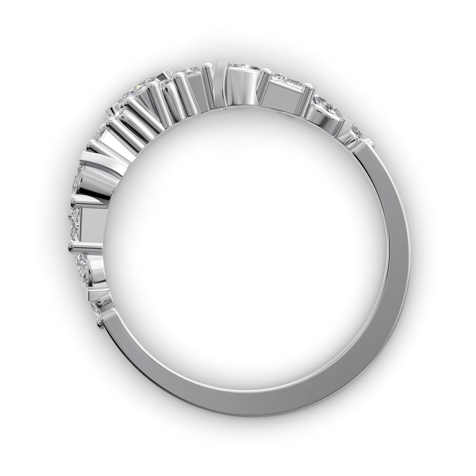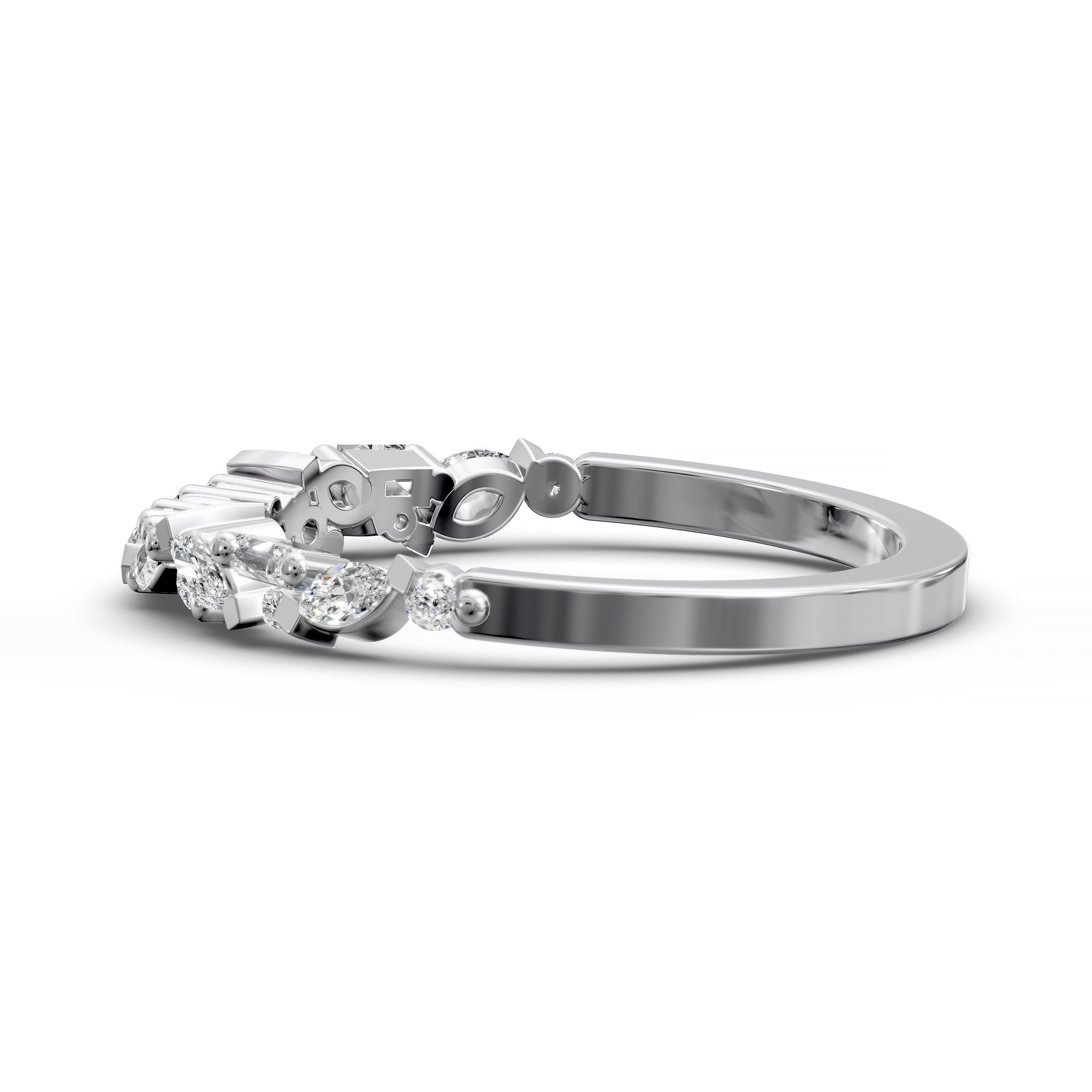 curved wedding band with marquise round and baguette diamonds mixed cut contour