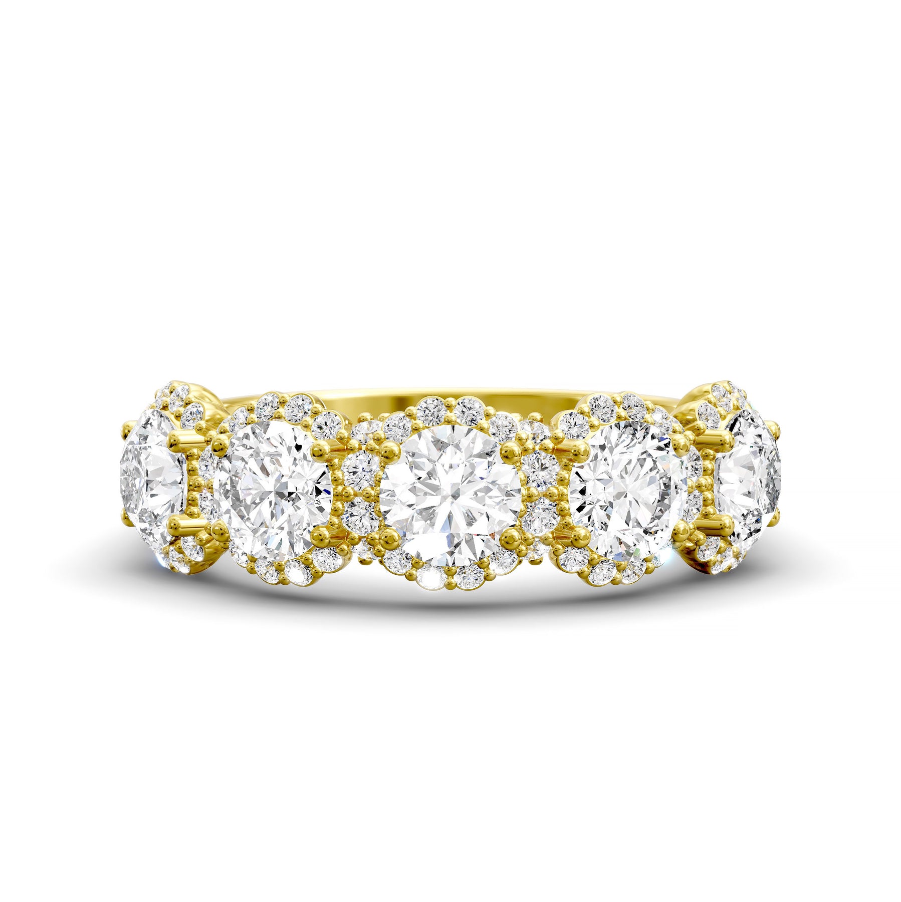 Introducing the Halo Diamond Band with Large Center Stones – a show-stopping bridal ring featuring luminous halos surrounding each center stone for amplified brilliance and depth. Its bold, dimensional sparkle creates a luxurious look that still feels timeless and wearable.