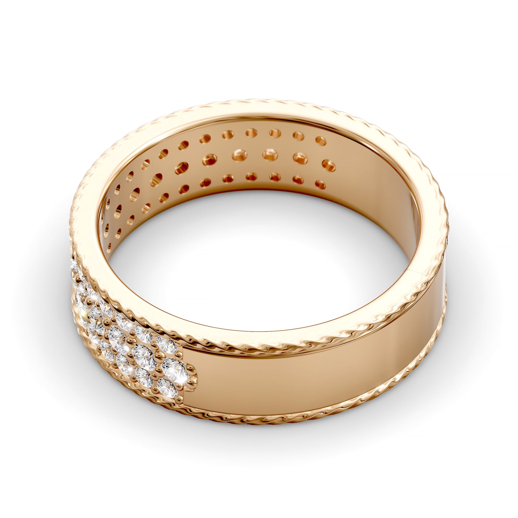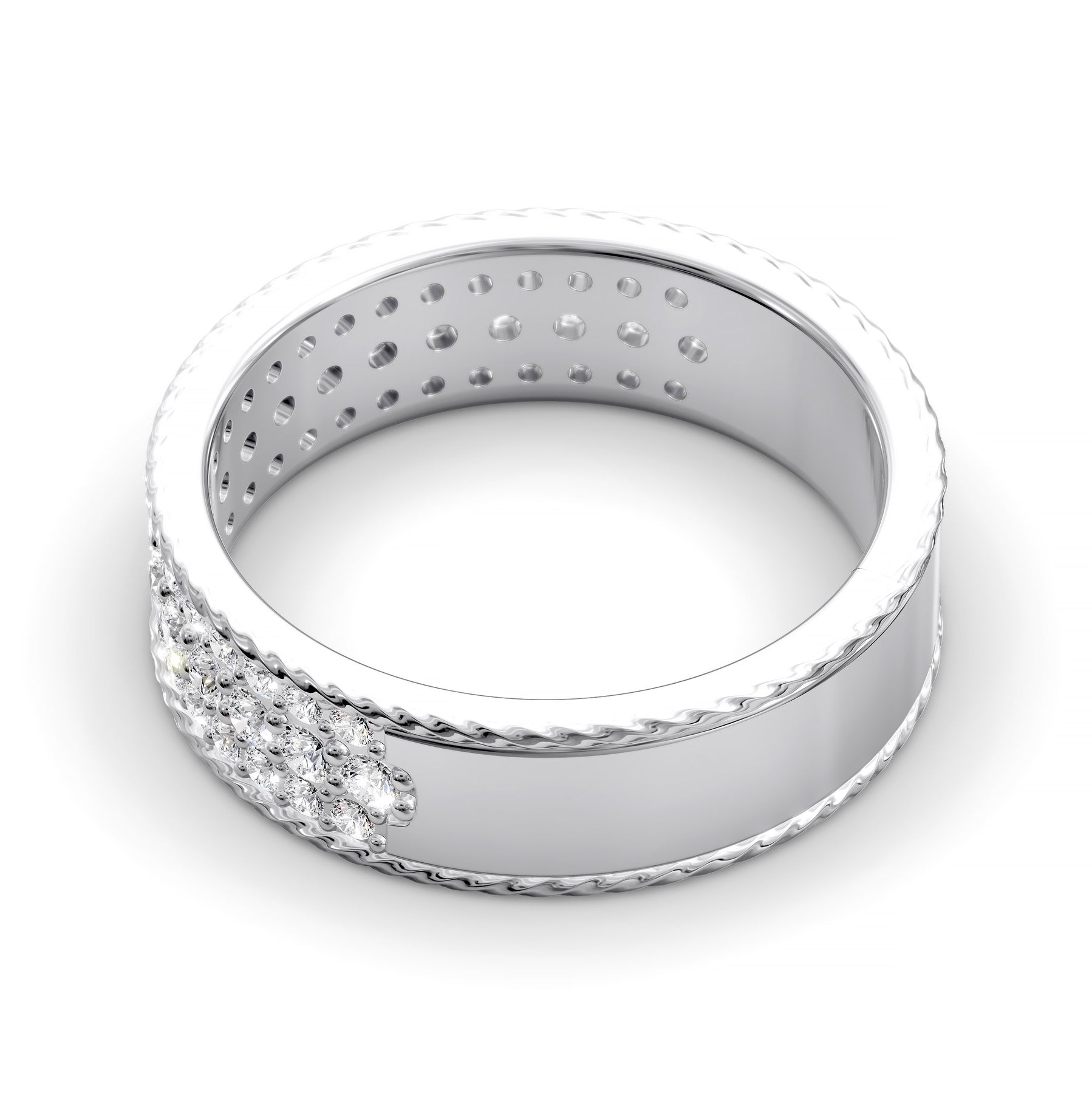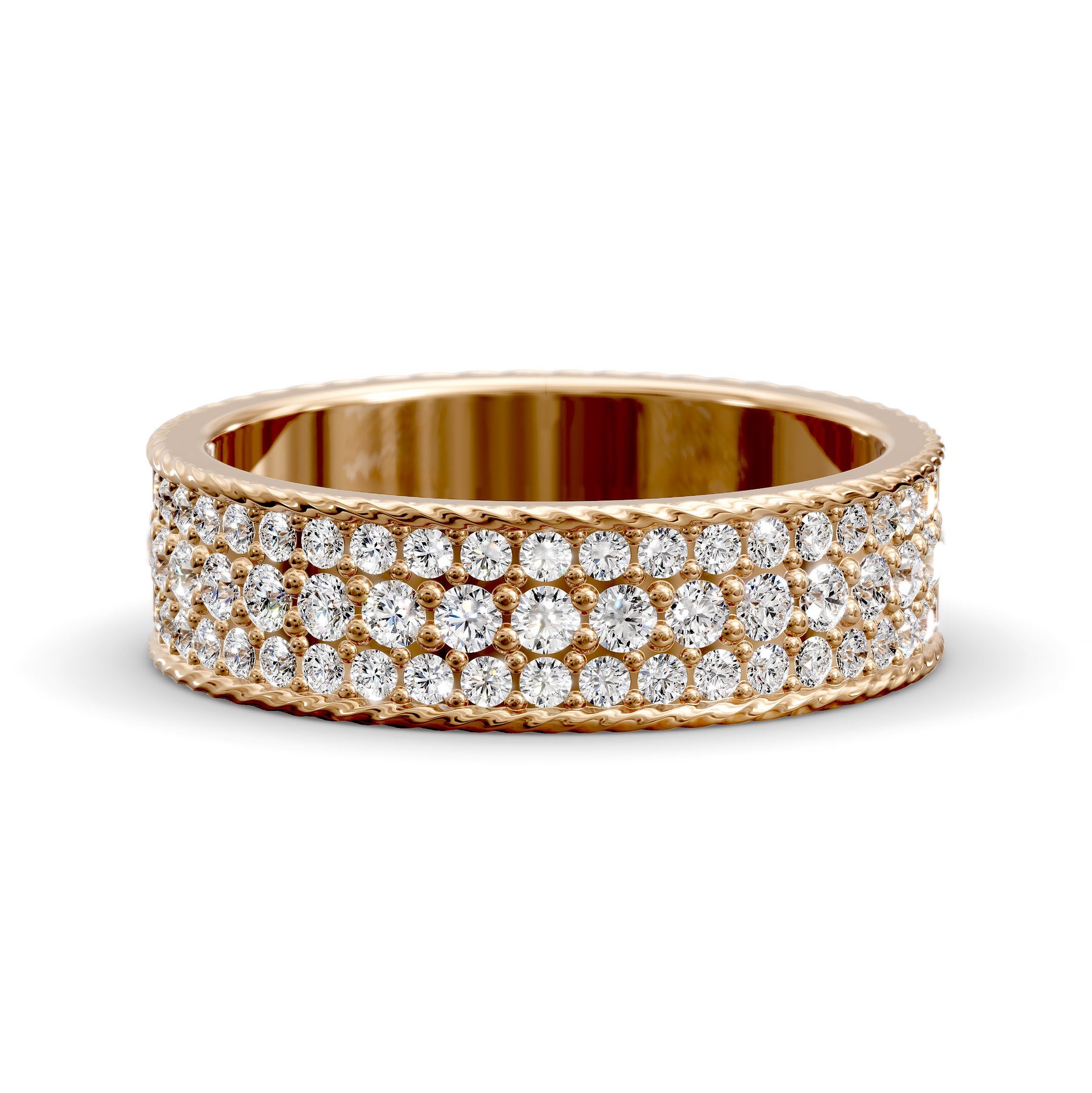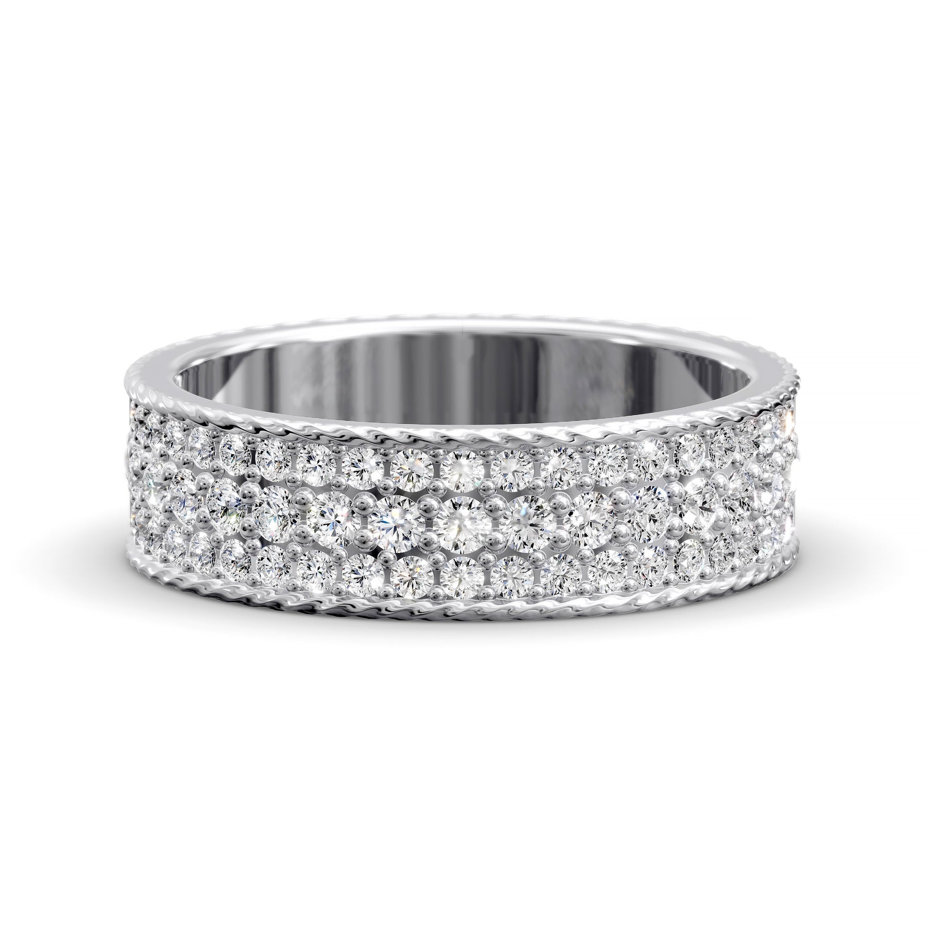 This “multi-row diamond band with rope detail” includes the primary keyword naturally to enhance SEO while highlighting its bold design, refined craftsmanship and meaningful elegance.