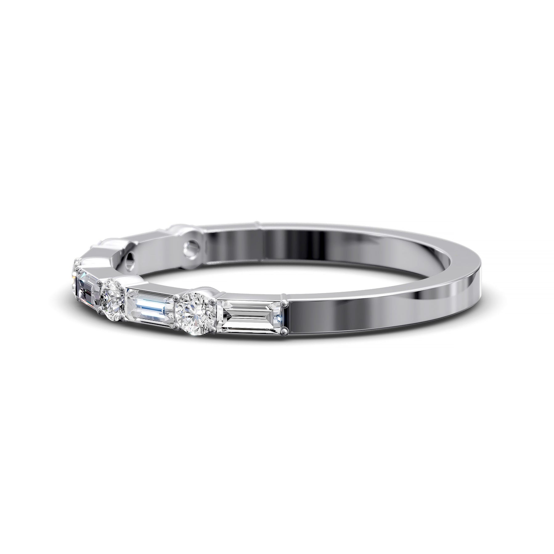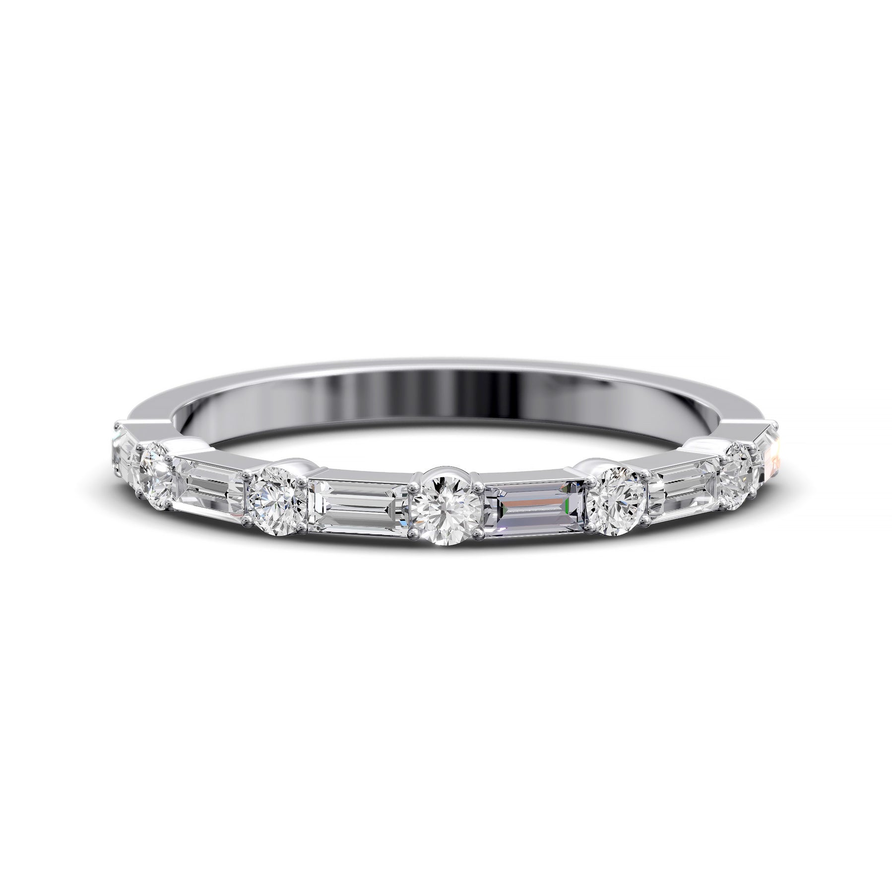 Round and Baguette Diamond Wedding Band with Modern Elegance