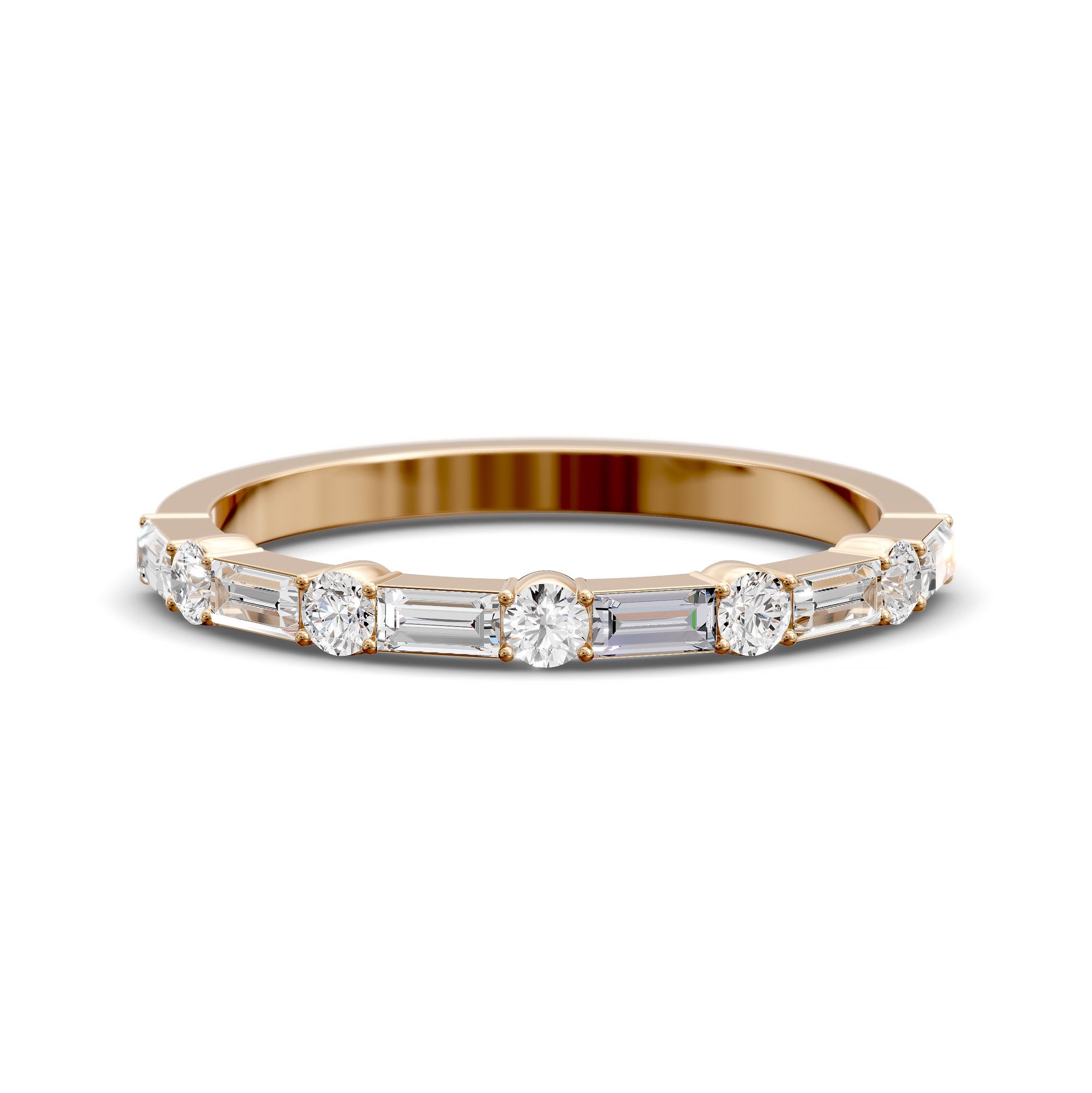 An elegant alternating-round-and-baguette diamond wedding band offering refined brilliance, modern symmetry and effortless everyday wear.